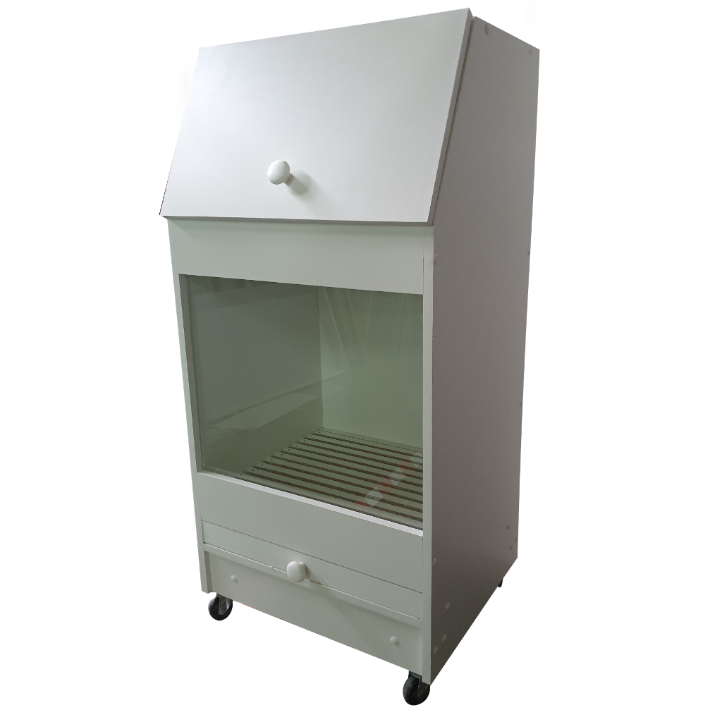 - Mueble panadero en melamina blanca- Vidrio frontal- Cajón para migas